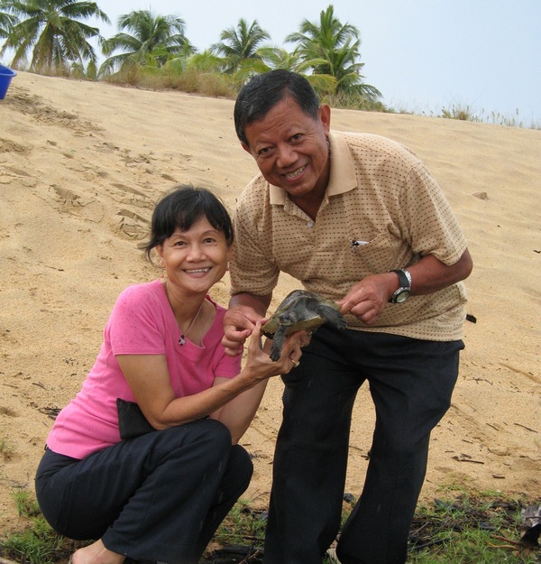 We spent an afternoon with Tan Sri Dr. Salleh Mohd Nor, Turtle Conservation Centre’s co-founder in Penarik on the 11th of September 2009. Tan Sri was shown the site the Turtle Survival Alliance (TSA) team had helped us select for the TCC during their visit a week earlier. It is indeed a beautiful location that spans an area of about 4.4 acres. We also brought 8 river terrapins along for Tan Sri to release them and he has agreed to adopt 6 of them for his grandchildren while En. Sulaiman, Tan Sri’s friend who drove us to Penarik agreed to adopt the remaining 2. It was quite an eventful afternoon as we had to summon Rani, Nafizi and other villagers to come help us as Sulaiman’s car got stuck in the sand :) All the pictures were taken by Pelf.