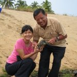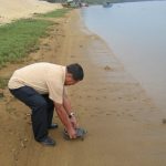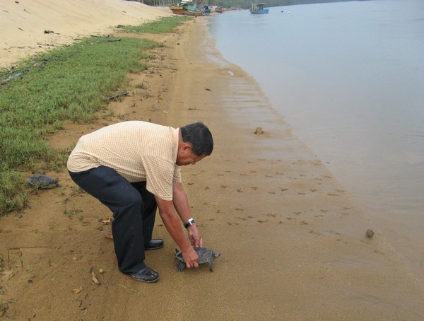 - Tan Sri releasing the last terrapin into the Setiu River.