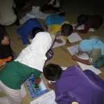 After the clean up, everyone was treated to drinks and “halal” mooncakes. I believe it was the first time the kids had ever tasted mooncakes. We then told the kids to go home, bathe, have dinner then come again at 8.30 pm to play with lanterns and work on colouring books brought by Mr. Wee.