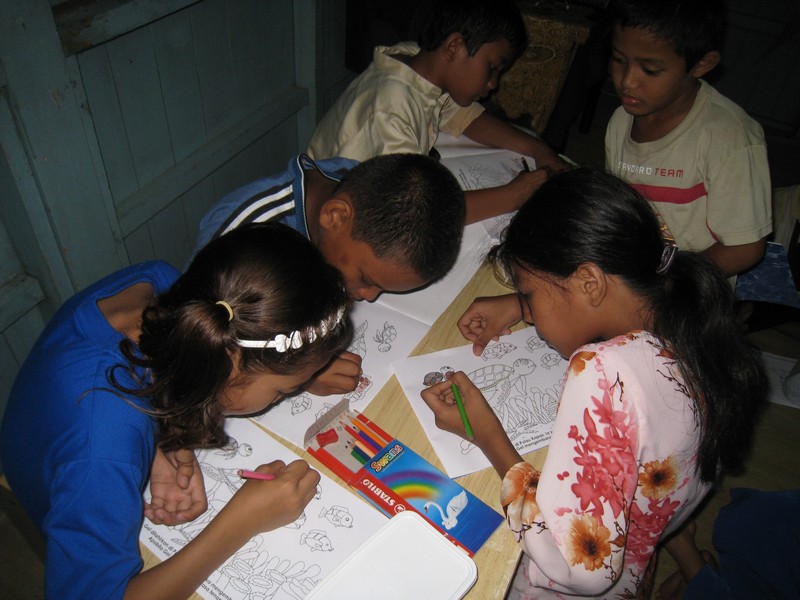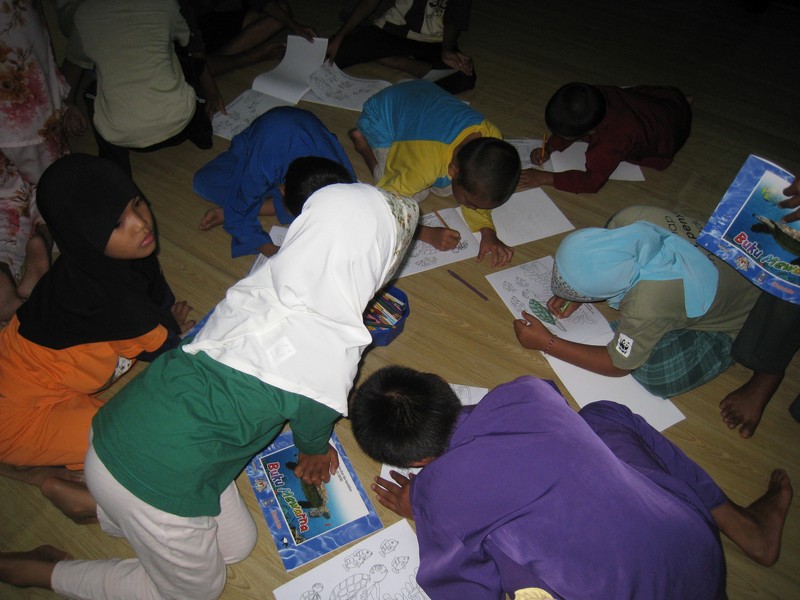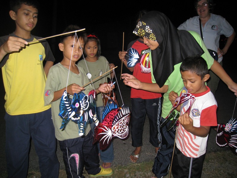 Clean Up the World 2010 and the Mooncake Festival were celebrated in an evening of fun-filled activities for the kids of Kampung Mangkok on the 24th of September 2010. We were assisted by 7 student volunteers from Universiti Malaysia Terengganu, Mr Wee Seng Whatt from MNS Terengganu, Meg Perry, our Fulbright U.S. Student Researcher and Su, Meg’s landlady. Azimi and Daniel from HOPE paid us a surprise visit and joined in the fun.