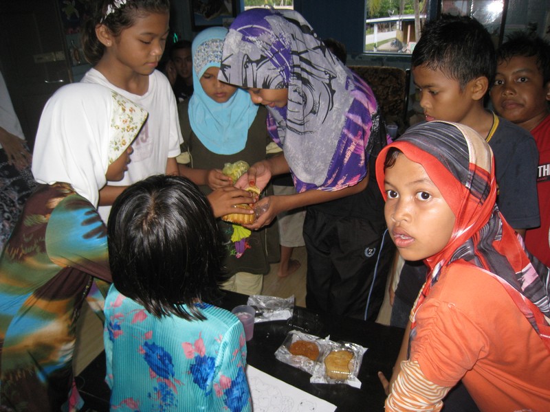 - kampung kids enjoying mooncakes