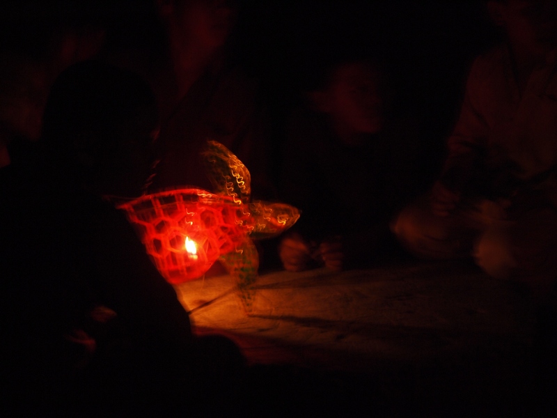 You should have seen the way the kids descended upon us after we returned from dinner at a friend’s place. Everyone chose their own lanterns and there was barely enough to go round. I was kept busy fixing candles and lighting them. The buzz of “auntie, auntie, auntie” made my head spin. But I was really happy to see the joy in the kids as they held their lanterns.