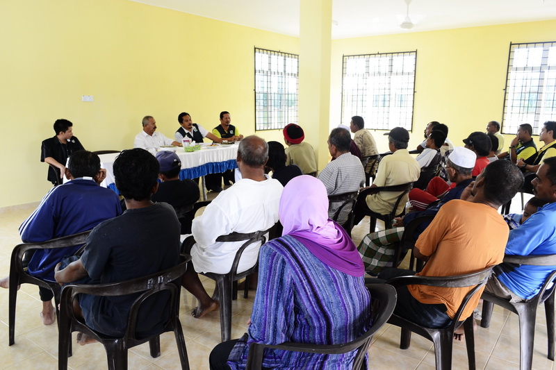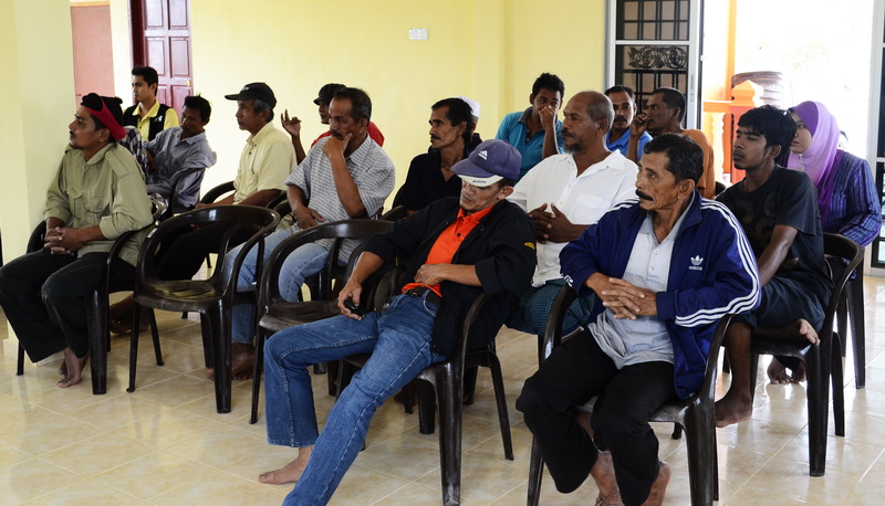 Thanks to the Village Headman, Tuan Haji Awang b. Junus (known as Tuan Haji Zaki to the villagers), 20 egg collectors attended the dialogue session. A detailed explanation regarding the terrapin-related offences and penalties under the new Wildlife Conservation Act 2010 was given by En. Edley Jiliun, Senior Assistant Wildlife Officer based in Besut while questions regarding the wildlife act and the dos and don’ts were answered by En. Mohd. Hashimi b. Ahmad Abidin and En. Mohd. Hafiz Anuar b. Abdul Hamid, Enforcement Officers from the Perhilitan Office in Kuala Terengganu.