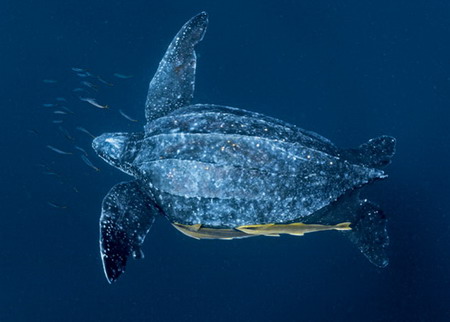 The leatherback turtle can dive to great depths. Leatherback turtles equipped with depth recorders dove to over 1,000 meters (3,300 feet) deep. This depth exceeds that reported for any air-breathing vertebrate with the possible exceptions of sperm whales and elephant seals. The shallowest dives occurred at dusk and the deepest at dawn. These leatherbacks were probably feeding on jellyfish that concentrate below 600 meters (2,000 feet) during the day and move into surface waters at dusk. The turtles dove almost continuously with only brief intervals at the surface to breathe.
