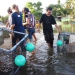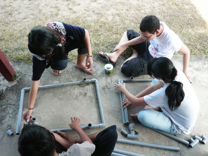 The following afternoon, the students returned to TCC to help build an additional two basking traps to trap river terrapins in the river. The necessary materials such as pipes, joints, glue, cable ties and some pictures were provided as reference. After the traps were built, we tested them out in the lagoon at the back of the village. The students had to fix and mend the traps for the traps to stand upright and the ramps secured at a certain angle. The students sure had their first taste of field work that day :D