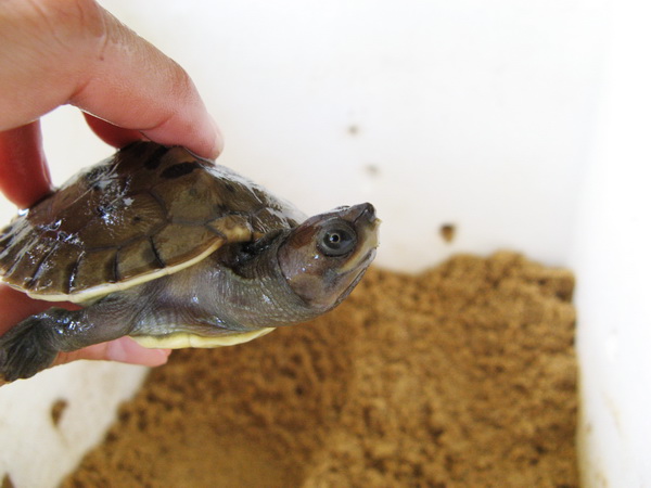 Sometime in the middle of June, our fisherman friend-cum-village neighbour-cum-project assistant who has been helping us head-start our river terrapins, Malek Yunus, helped us purchase 15 painted terrapin eggs for incubation. Both Prof. Chan and myself were not in Setiu, but we had earlier on taught Malek how to carefully place the eggs into the styrofoam box and layer them with sand from the nesting bank.