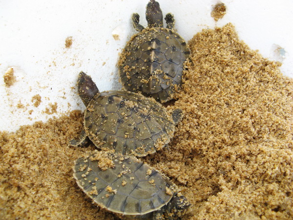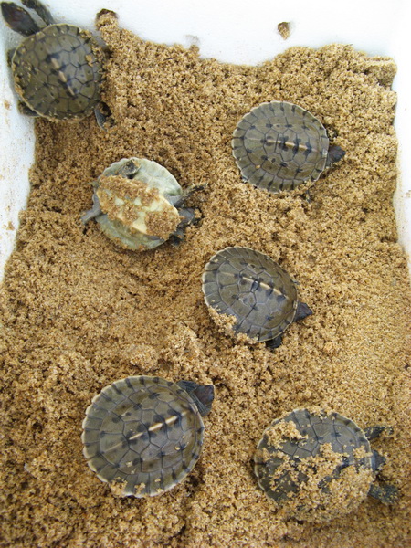 Imagine my pleasant surprise when I discovered them this morning! We will be bringing these cute little hatchlings back to Setiu where we will weigh and measure them. This was our first attempt at incubating painted terrapin eggs and we are really pleased that a hatch rate of 100% was achieved.