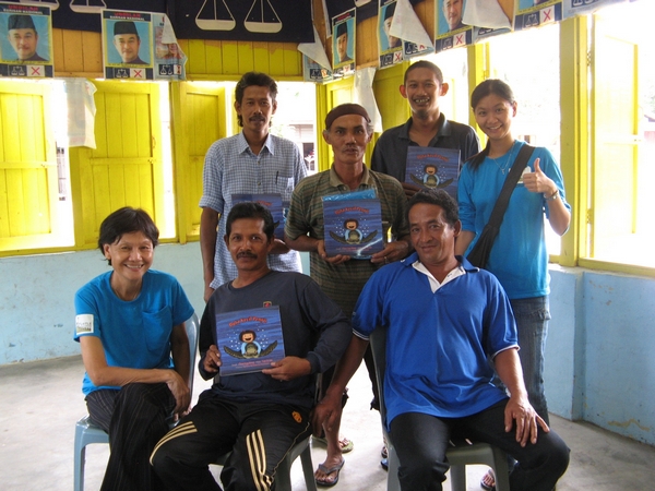 The third village covered (Kampung Keluang) was on Sungai Keluang Kecil. Again, we were touched by the friendliness of the fishermen and their cooperation. Everyone involved was all smiles. We were indeed pleased to show our appreciation to all the interviewees by giving them each a TCC T-shirt and a copy of “Duta Kecil Penyu” (the malay version of “Little Turtle Messenger”).