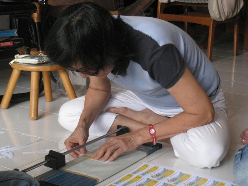 - Prof. Chan cutting the cards to precision.
