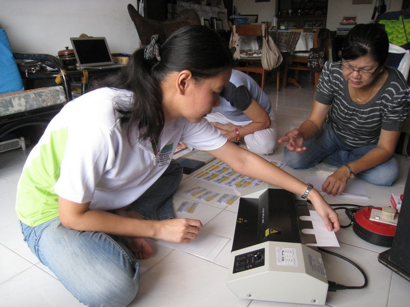 - Pelf laminating the cards.