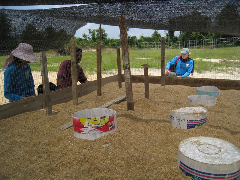 The villagers started the project about 2 weeks ago and as of yesterday (1 March 2011), 36 clutches or nests have been protected. We took Dr Gerald Kuchling along with us yesterday to have a look at the hatcheries constructed by the villagers as well as the three nesting banks (Pasir Pak Kadir, Pasir Pok Yok and Pasir Merbau Eper) we have proposed to Perhilitan to be gazetted as nesting sanctuaries.