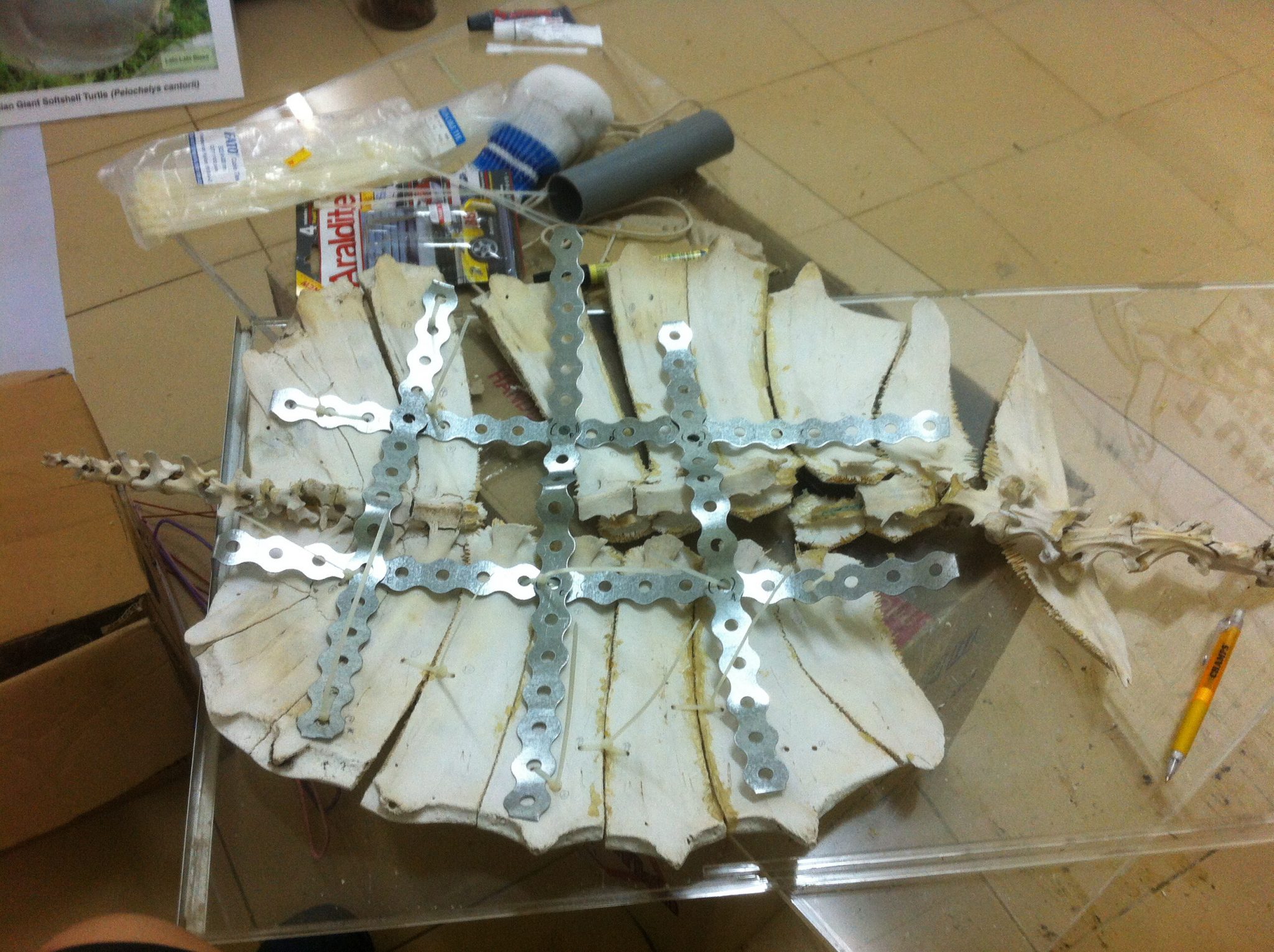 We also managed to repair a broken Giant soft-shell turtle and bring it back to its full glory! It involved using lots of usual hardware shop items (cable ties, epoxy glue, steel links) and some ingenuity! Due to the flat nature of the Giant soft-shell turtle, this would be our “Smithsonian” hero exhibit so come by and see it the next time you’re around the corner, ok?