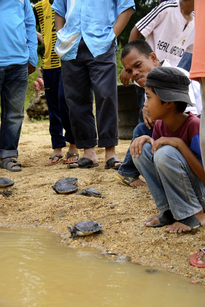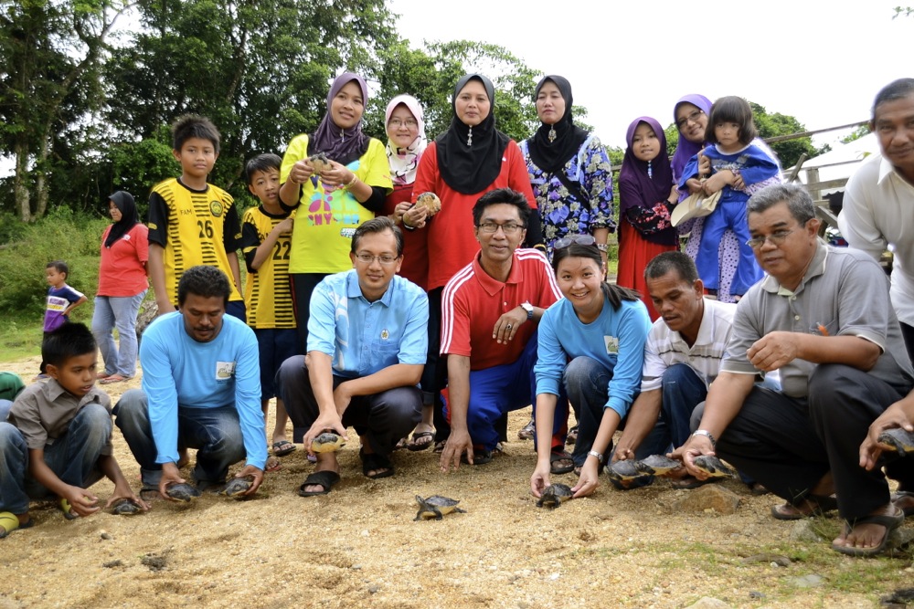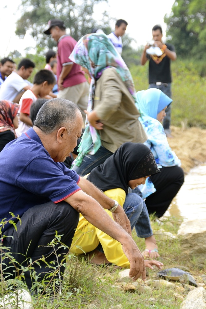 On Saturday, 13th October 2012, a total of 413 five-month-old river terrapins were released into the Kemaman River. These river terrapins were hatched from the river terrapin conservation project carried out in Kg. Pasir Gajah earlier this year.