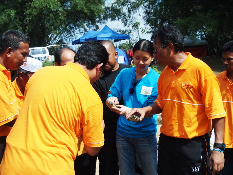 The Minister of Youth and Sports, Datuk Ahmad Shabery Cheek graced the release event, which was also attended by Kg. Dadong Headman, En. Wan Mamat himself, and the Head of the Perhilitan office in Kemaman, En. Azuan Alias. I also had the opportunity to inform Datuk about the river terrapin projects that TCC carries out in the Kemaman River. Datuk was very happy with the river terrapin conservation project, and suggested that the project be adopted by Kg. Dadong, continued and intensified in the future. Thank you Datuk, for your support!