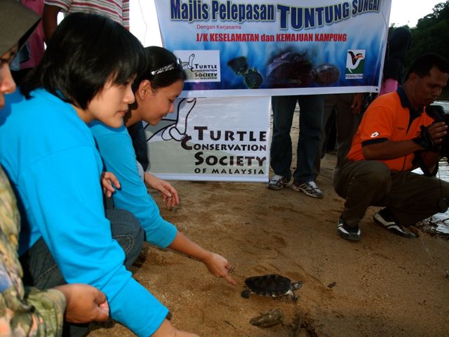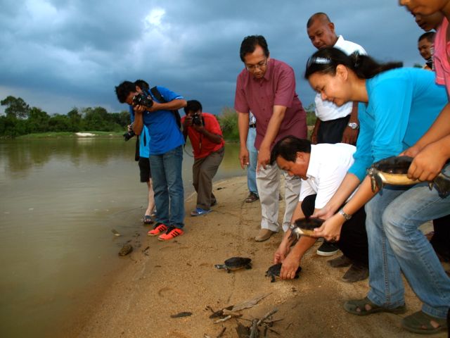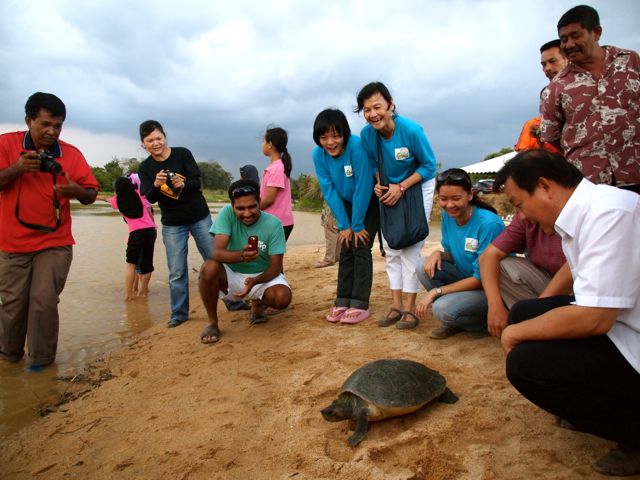 On Saturday, 24th March 2012, we released 21 river terrapins into the Kemaman River in a “release of life” ceremony. These river terrapins, aged 10 months, were hatched last year from the Kemaman River Terrapin Conservation Project, a joint-project between Turtle Conservation Society of Malaysia (TCS), the Department of Wildlife and National Parks (Perhilitan) and the Tok Kapor Village Security and Development Committee in Binjai, Kemaman.