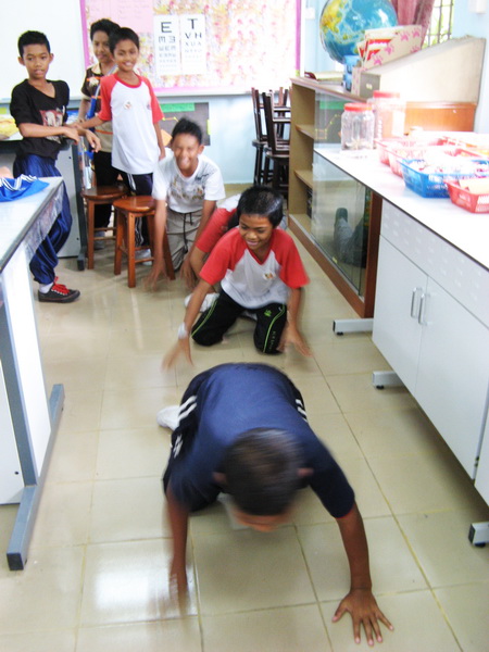 - Students crawling like terrapins