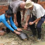 The most tricky part was finding a suitable place to house the turtles. The non-native ones have to be confined so that they do not escape into the wild under any circumstance. The search was good for me as I ended up reconnecting with an organic farmer friend, Dr. Ng Poh Kok whom I had more or less lost touch with. I also worked with Loretta Shepherd who invited Drs Reuben Sharma and Sumita Sugnaseelan (vets who are also a veterinary science lecturers at Universiti Putra Malaysia) to assess the health condition of the turtles prior to release. The health assessment was particularly valuable, not only for the obvious benefit of the turtles, but it was a hands-on experience for 27 veterinary students and 4 volunteers who assisted in the 6-hour long operation.