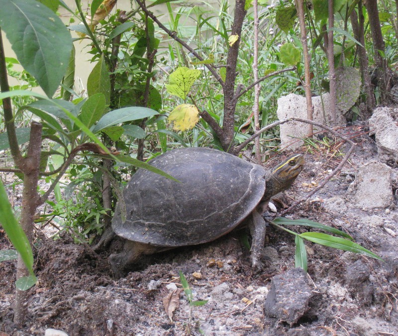 Coming back to the story of the Sam Poh Tong Temple turtles, a preliminary visit confirmed the presence of four species of turtles, one of which was a non-native species. There was one Malaysian Giant Turtle, three Black Marsh Turtles, 56 Asian Box Turtles and 48 Red-Eared Sliders, the non-native species, giving a grand total of 108 individual turtles kept in the concrete pond. As the pond was shallow the small quantity of water heated up quickly in the hot weather and most times, the turtles crawled out to seek refuge under some zinc sheets.