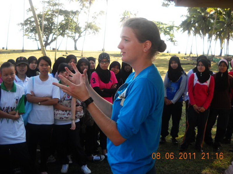 - Meg giving a briefing to the students of S.K. Tengku Bariah