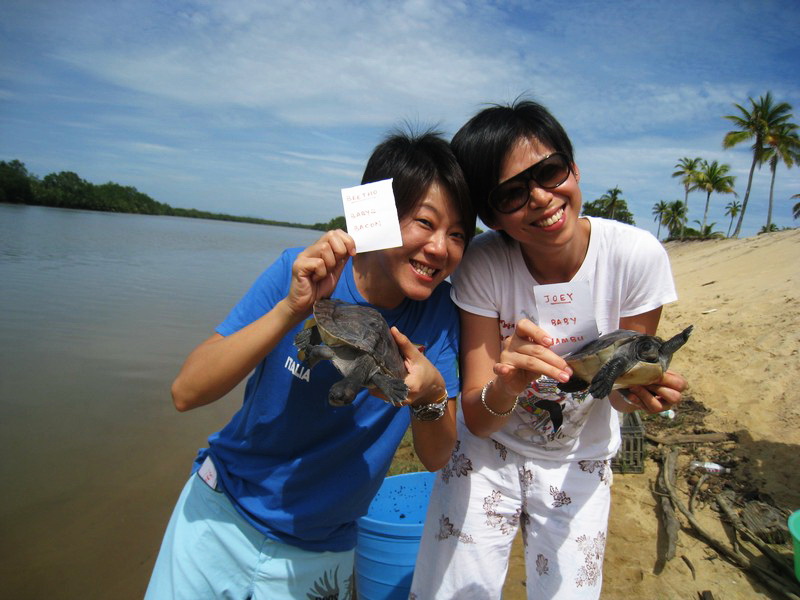 Apart from it being a yoga retreat, it was also a “terrapin release event” because Joey had also managed to secure some terrapin adoptions from her yoga friends and students in KL. The amazing group of yoga enthusiasts–Joey, Beetho, Cheong, Chan, Elly (Cheong and Chan’s seven-year-old daughter), Lim and together with Joey’s students/friends Ivy, Mok, Fennie, Ann Ann, Ean Nee and Sharlin adopted a total of 20 river terrapins!